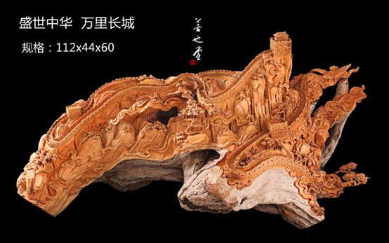 2017年11月《盛世中华,万里长城》获中国南太行崖柏根石艺术节特等奖