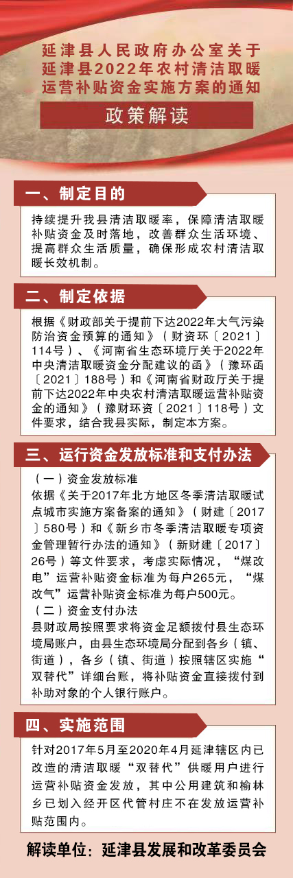 延津县2022年农村清洁取暖运营补贴资金实施方案