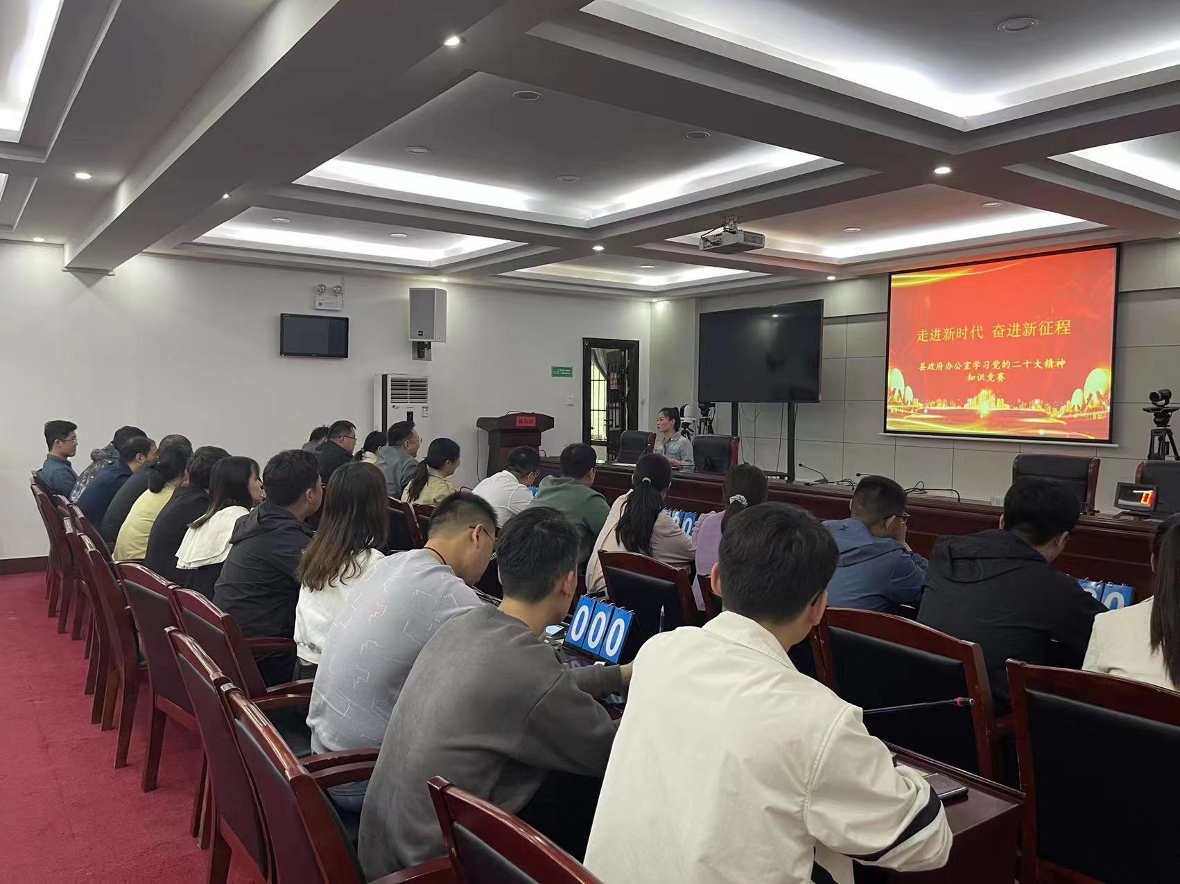 “第一组,综合股请回答!”“中国式现代化。”“回答正确!加10分。”一场别开生面的知识竞赛正在上演。4月27日,县政府办公室举办“走进新时代、奋进新征程,学习党的二十大精神”知识竞赛,县政府办综合股、秘书股、信息股等8支参赛队伍角逐高下。