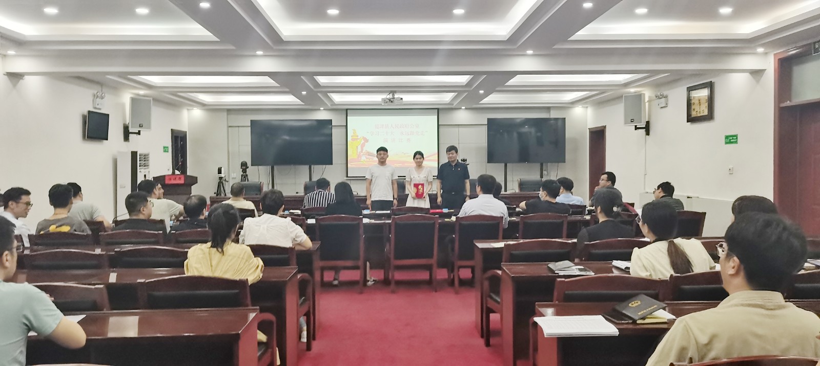 为庆祝中国共产党成立102周年,重温党的光辉历史,讴歌党的丰功伟绩,弘扬伟大建党精神,展现青年干部的新作为、新担当、新姿态,引导青年干部坚定信念、一心向党,激发青年干部干事创业激情。7月4日,延津县政府办公室机关党支部在庄严的宣誓中拉开了以“学习二十大 永远跟党走”为主题的演讲比赛序幕。