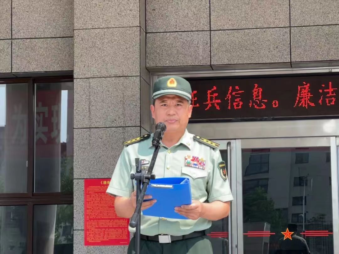 佟胜友宣读2023年下半年入伍新兵名单。新兵代表及新兵家长代表作发言,全体新兵高举右拳,面向鲜艳的五星红旗进行了庄严的入伍宣誓,慷慨激昂表达了投身军营、献身国防的坚定决心。