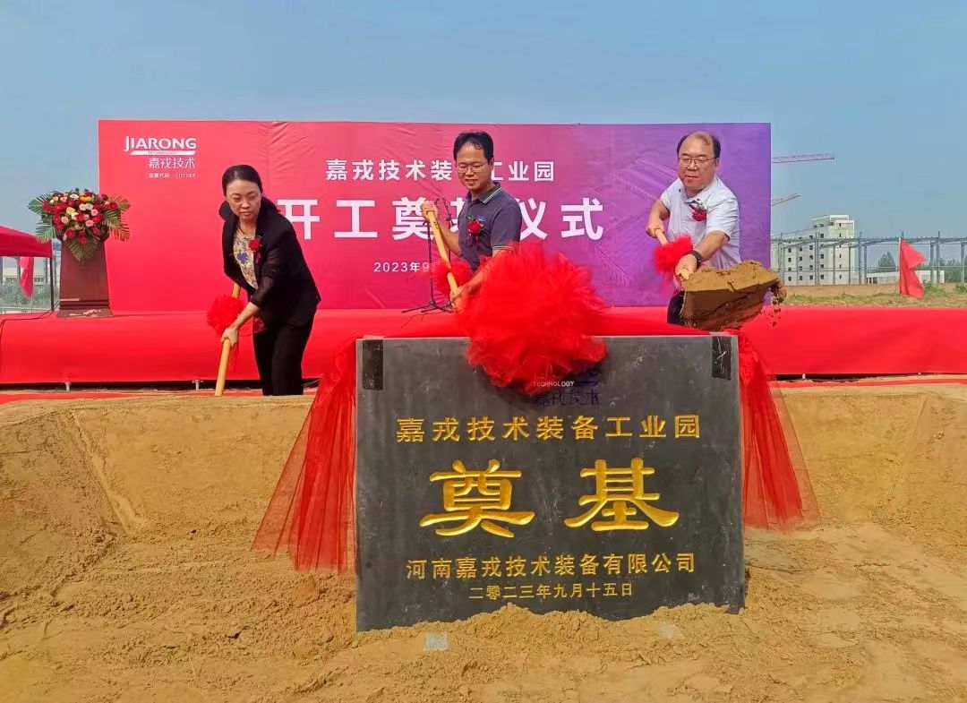 9月15日,嘉戎技术装备工业园开工仪式在延津县先进制造业开发区举行,县委书记李泽宙,嘉戎技术总裁董正军,县委常委、组织部长巩红敏,县先进制造业开发区管委会主任周培国,中重建安公司总经理李奇峰出席开工仪式。