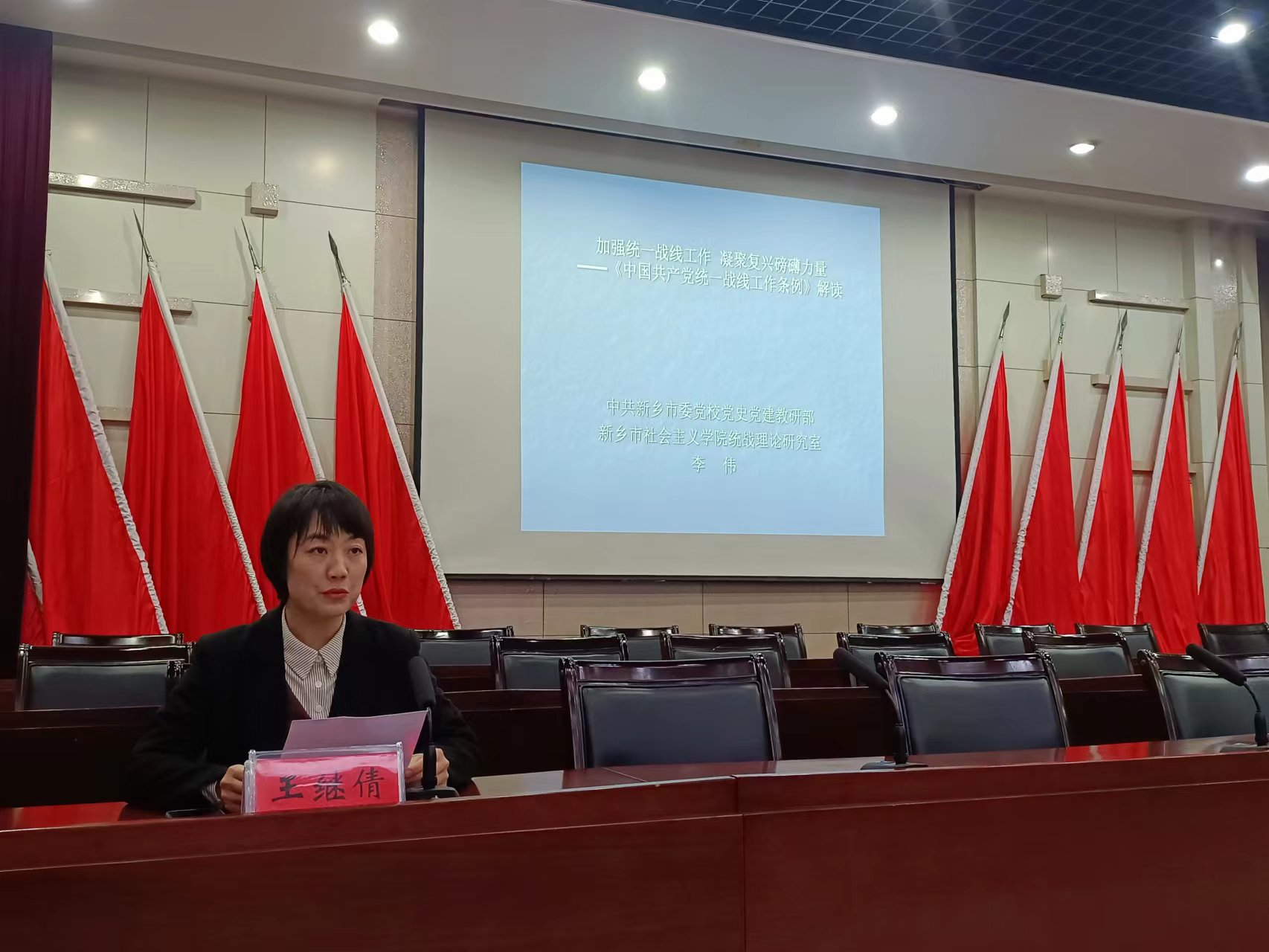 会上,李伟教授以《加强统一战线工作,凝聚复兴磅礴力量》为题,从历史、现实、发展、实践四个维度对《中国共产党统一战线工作条例》的修订背景、过程及意义进行了全面细致、深入透彻的解读,从什么是统一战线、为何做统战工作、怎么做好统战工作三个方面为与会人员作了深入浅出的讲解。