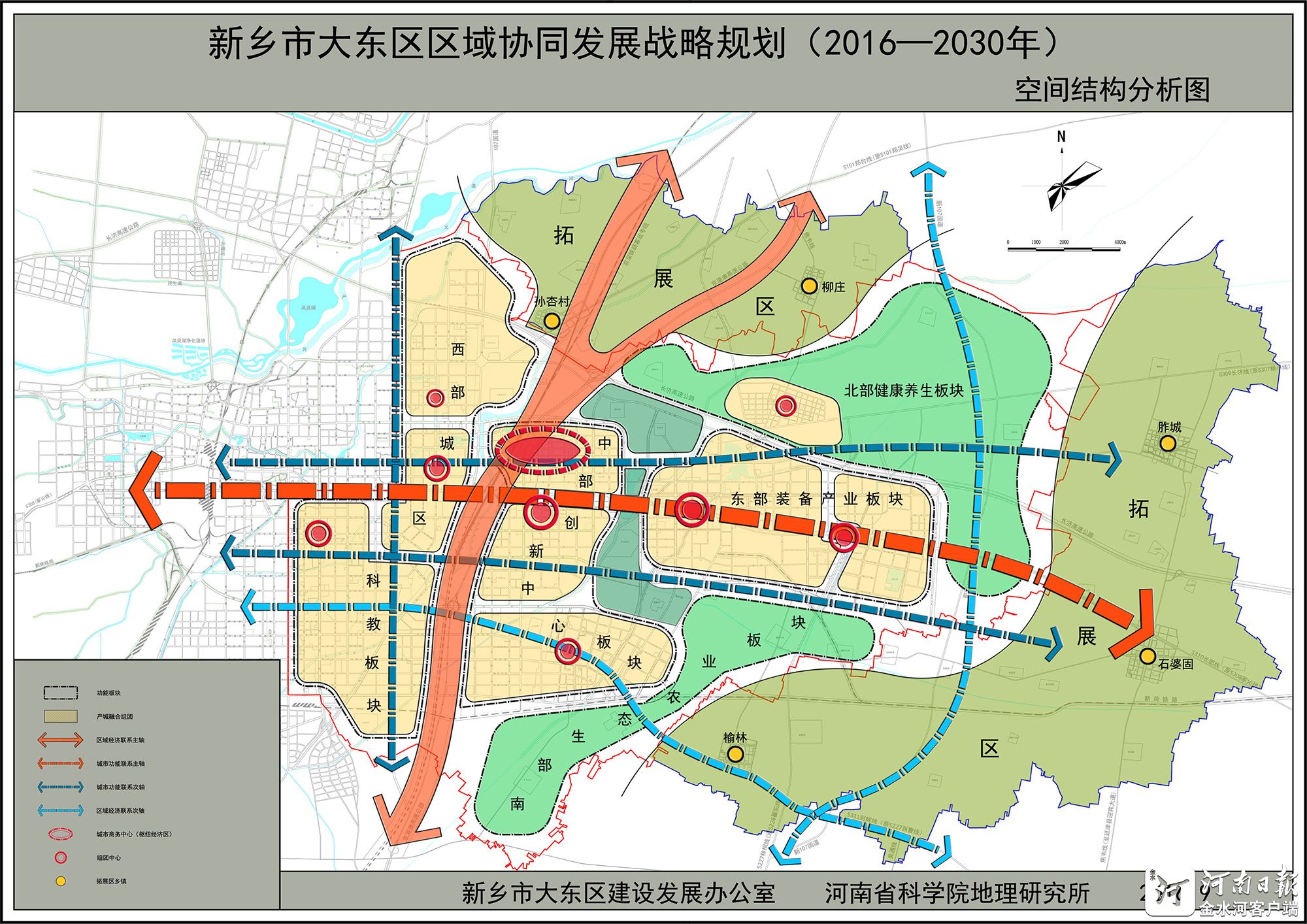 如何破解当前面临的问题?新乡市提出打破各自为政、本位主义,将“大东区”作为有机组合体,走点线面、组团式发展之路,一张蓝图绘到底,打造新的增长极,做强做大主城区,在中原城市群和大郑州都市区建设中发挥重要作用。