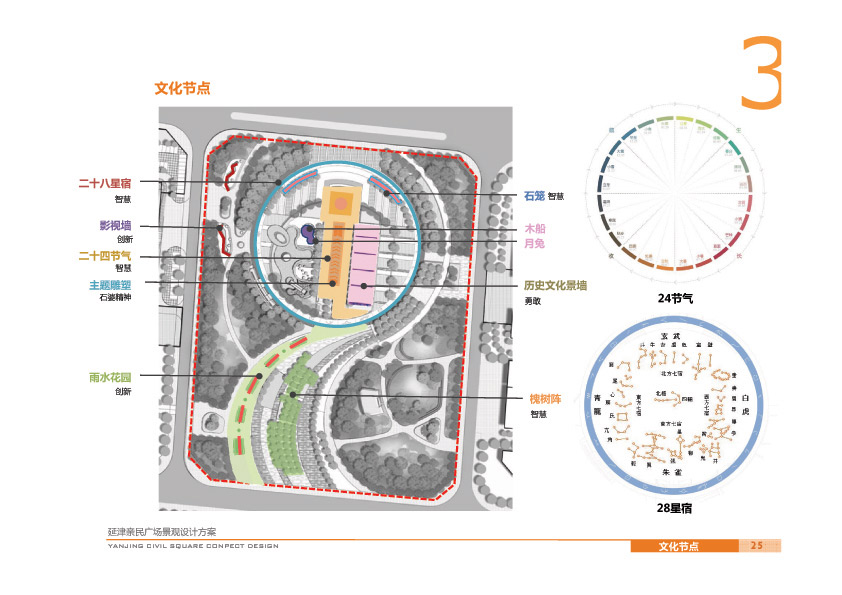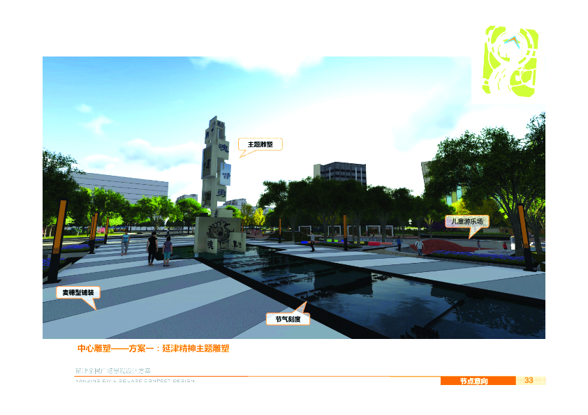 2. 广场中镜水廊道形态由麦穗抽象而来,雕塑放麦穗中间